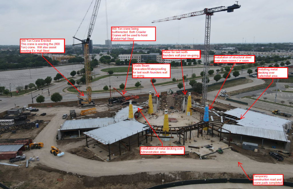 - All temporary roads and crane pads complete in preparation for the Exhibit Hall Steel Erection.