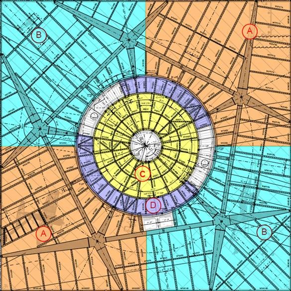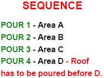 Due to the way the structure is designed to move during construction (structure sequencing), the North-East and South-West quarters will be poured first (in orange, Area ‘A’). Our teammates from Linbeck are self-performing the work.